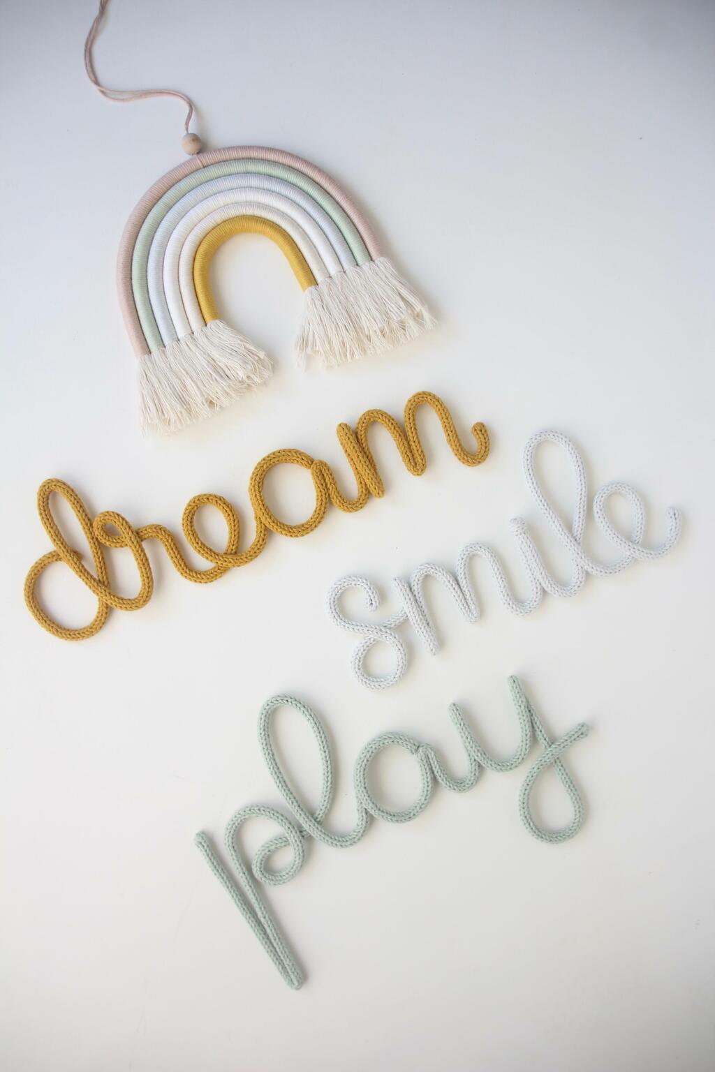 Palabras que son un complemento divertido y súper tendencia para cualquier rincón, un mensaje inspirador en letras suaves y con toda la onda!